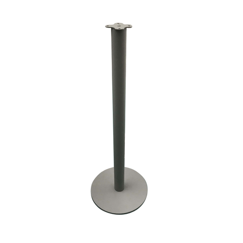 Pedestal post with round base, equipped with a ring in the upper part to attach the rope with carabiner.